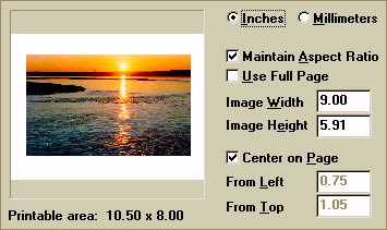 ![]() Paint Shop Pro is an excellent, full-featured graphics editing application. Unfortunately, it has one very annoying feature that dramatically detracts from its usability: the user cannot print an image at its actual size, at least not without having to pull out a calculator and performing some conversions. By default, the print function sizes the image to fit the page. The user can override this setting by entering the dimensions of the image in the Page Setup window shown above, in either inches or millimeters. The problem is that Paint Shop Pro, like most graphics packages, uses pixel measurement throughout the rest of the application. The actual size of the sunset image shown in the preview window above is 299 pixels wide by 186 pixels tall (approximately 4 inches by 2.5 inches). To print the image at its actual size, the user would either have to guess as to the approximate size of the image, or convert the pixel dimensions of the image to the scale of measurement used on the Page Setup window. Unfortunately, as is the nature of computer images, any difference in the dimensions of the image will degrade the quality of the printed image. A much more useable solution would have been to (a) default to the actual size, and/or (b) provide Actual Size and Fit to Page options. One additional problem is that the user cannot change the page orientation from the Page Setup dialog. The user would have to close the Page Setup dialog, open the Print Setup dialog, make the change, then return to the Page Setup dialog. That seems like a lot of unnecessary wandering about the application. Aside from these problems, Paint Shop Pro is an excellent program, and is one of the best shareware programs available. |