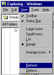 For Microsoft to have 'forgotten' to include these shortcuts on the menu items they represent is especially shameful, since they led the way in creating this standard. Here's the rule: if you provide shortcuts in your application, let people know about them. Display the shortcut to the right of the menu item it represents. Interesting note: one of the most useful features of Explorer, the "Up one Level" function, which takes you to the next higher level in the hierarchy, can only be accessed by the toolbar icon; not only does it not have a shortcut, it has no menu or keyboard equivalent. Well, that's not entirely true, you can use the following sequence of keyboard commands: TAB + Down + Up + Enter. The responsible party in Redmond was apparently asleep during the design review.
