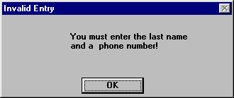 This attitude expressed in this error message from IBM's Aptiva Address Book application, certainly earns it a place in our Error Messages section, but it illustrates two aspects of interface stupidity. The first is that the message is wrong; it is generated when the user attempts to add a record that's missing either the last name or the phone number. The programmer apparently was not competent enough to display a message for the specific omission, so he or she opted for a generic incorrect message.