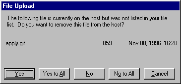 Microsoft's Web Publishing Wizard, is used to manage Web site files. At one point in the process, the Web Wizard obtains a list of the existing files on your site then asks you, one file at a time, whether or not you want to delete the file. If we wanted to delete the file zderr.gif, for example, we would have to respond "No" to each of the nearly 600 filenames that precede it. Computers can't get much dumber than this.